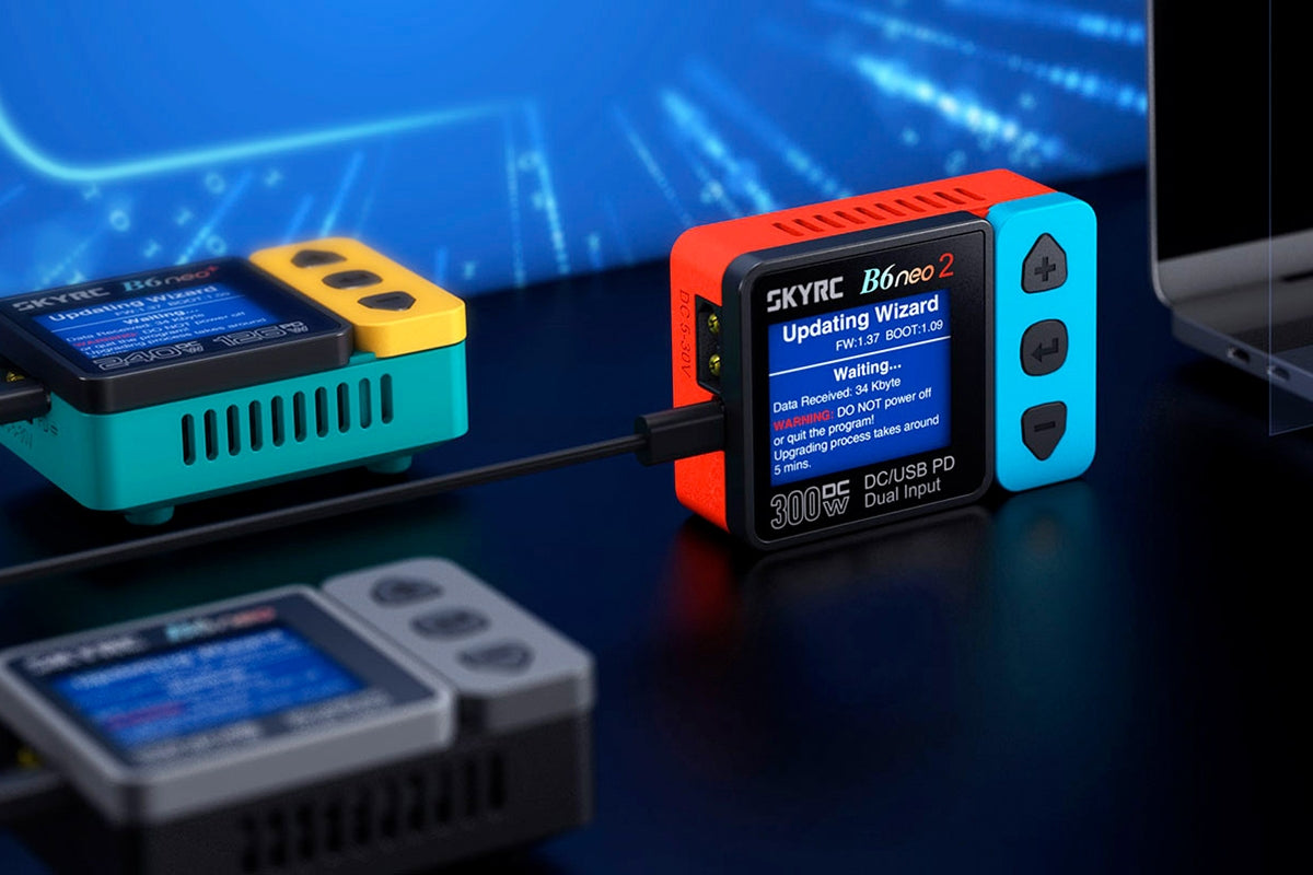 The SkyRC B6neo 2 300W Charger is an ultra-compact and powerful multifunctional charger for almost all common battery types in the RC sector. With up to 300W charging power, integrated balancer, and modern USB-C power supply (PD/QC), it is the perfect companion for on the go and in the pit.