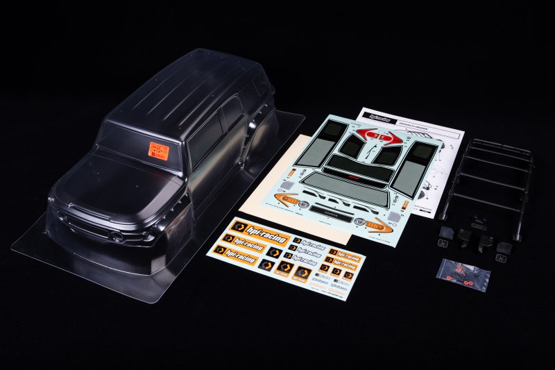 Like all HPI bodies, this one also comes with a protective film against overspray , pre-cut window masks , and a comprehensive, pre-cut decal sheet . This includes original Toyota and FJ Cruiser logos, headlights, taillights, turn signals, window frames, grille details, and much more.